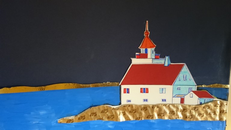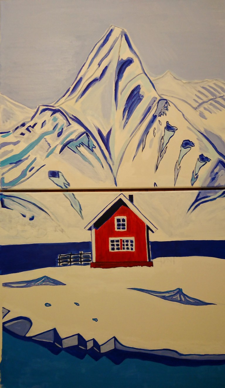 Un paysage vide, en Antarctique ou dans le désert : toujours un phare sur l’eau pour guider l’homme (Red Lighthouse), une gare pour acheminer des voyageurs en plein milieu de la forêt (Travel to Myrdal), une maison en plein fjord en Scandinavie (Rorbuer)…